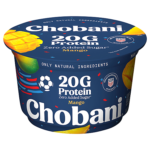Chobani Mango Protein YogurtChobani® 20g Protein has complete proteins to help you feel fuller for longer and vitamin B12 to unlock energy, naturally. Crafted with real fruit and 0g added sugar.