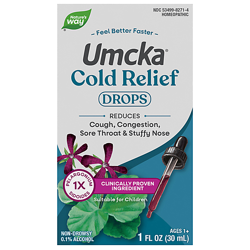 Natures Way Umcka Drops Alcohol-freeShortens duration and reduces severity of nasal and bronchial irritations, congestion, sore throat, and cough.