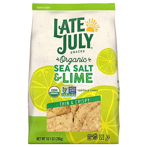 Let the good times roll with Late July Snacks Thin and Crispy Organic Tortilla Chips with Sea Salt and Lime. A refreshing twist on a classic, Late July Sea Salt and Lime Tortilla Chips are made with real lime and perfectly seasoned with sea salt. These restaurant style tortilla chips have a melt-in-your-mouth, thin and crispy texture that’s the perfect complement to authentic salsa. Crafted with organic whole ground corn, our corn tortilla chips contain only the finest ingredients, with no artificial flavors, colors or preservatives. In addition to being USDA Certified Organic, they’re also Non-GMO Project Verified, Certified Gluten Free, vegan and kosher. Enjoy these amazingly delicious, gluten free tortilla chips on their own, dip them in salsa, queso or guacamole, or use them to make nachos, taco salad and more. Each 10.1-ounce bag contains 10 servings and is perfect for sharing with friends or snacking alone. At Late July, we believe the best gatherings only need a few simple ingredients: good friends, good stories and great food. For us, that means a big bowl of our thin tortilla chips and salsa. In addition to Sea Salt and Lime, Late July organic chips are also available in Sea Salt, Chia and Quinoa, and more. Late July is the sweet spot of summer. It’s a moment in time when life is simple, pure and good. And Late July tortilla chips take you there, any time of the year! Try Late July organic snacks today.