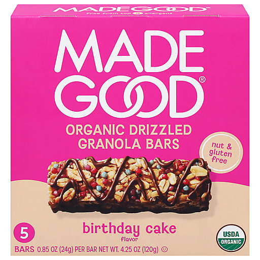 Has Willy Wonka taken over MadeGood? The new chocolate drizzled granola bars are so scrumdilicious anything is possible! Think chewy MadeGood Granola Bars, baked with all the nutrients from 6 veggie extracts, ingredients, free from most common allergens, now drizzled with dairy-free chocolate. Decadent? Yes. Amazing? Absolutely.