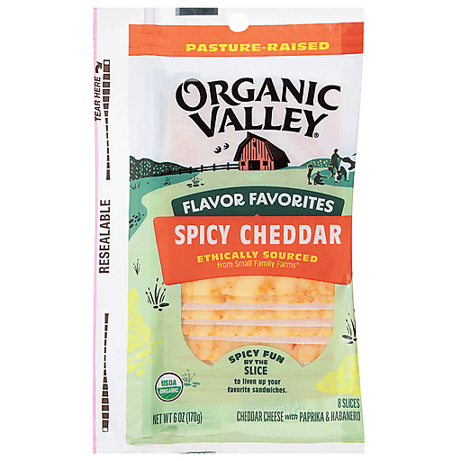 Organic Valley® Organic Spicy Cheddar Cheese Slices bring bold flavor and just the right amount of heat to everyday meals. Made with organic paprika and organic habanero, and crafted from milk from pasture-raised cows, these fiery slices deliver a creamy kick that melts like a dream.
