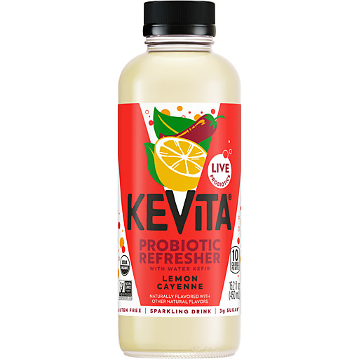 The perfect balance of sweet and spicy, KeVita Lemon Cayenne jumpstarts your core with just the right touch of heat. KeVita Sparkling Probiotic Drinks are light and refreshing with a delicious fruit taste.Fermented with our proprietary water kefir culture, KeVita Sparkling Probiotic Drinks have billions of live probiotics.