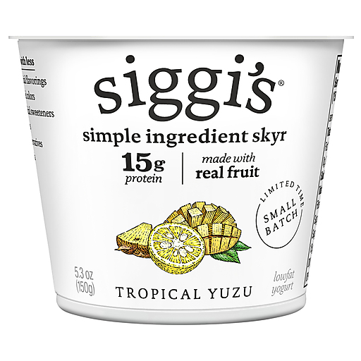 Wake up your taste buds with simple ingredients and a splash of bright yuzu. siggi's Tropical Yuzu Icelandic-Style Strained Lowfat Yogurt is an ode to a deeply rooted Scandinavian dairy tradition that has been a part of Icelandic culture for centuries. Yuzu, a citrus fruit, brings a bright, tangy flavor to our yogurt. True to Icelandic tradition, our yogurt is made with no artificial flavorings, no artificial sweeteners, and no preservatives. Each cup of siggi's yogurt uses 4x the amount of milk than a regular cup of yogurt — making it rich in protein, with 15 grams per serving. siggi's yogurt is thick and creamy — ideal as an addition to breakfast, a nutritious snack, or an easy afternoon pick-me-up. Since skyr is traditionally fat free, it has been an age-old practice to throw a bit of cream back into it for a tad richer touch. Gluten-free and kosher, you can pair our seasonal and smooth tropical yuzu yogurt with your favorite toppings, like fresh berries and granola, or enjoy as is. Try our full line of products, including skyr, drinkable yogurt, plant-based blends, and yogurt pouches.